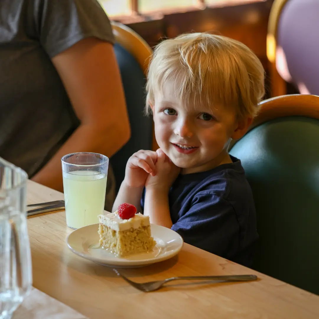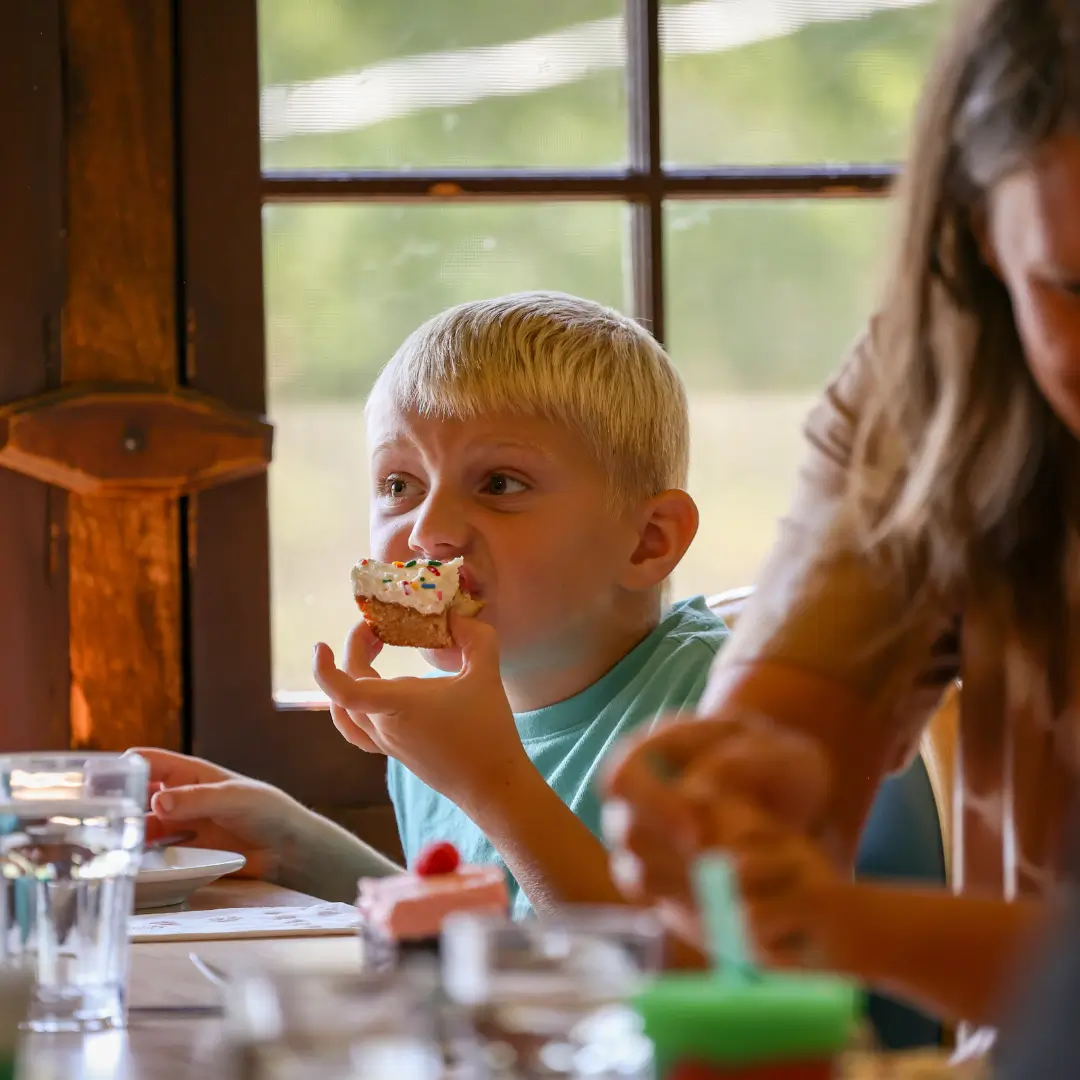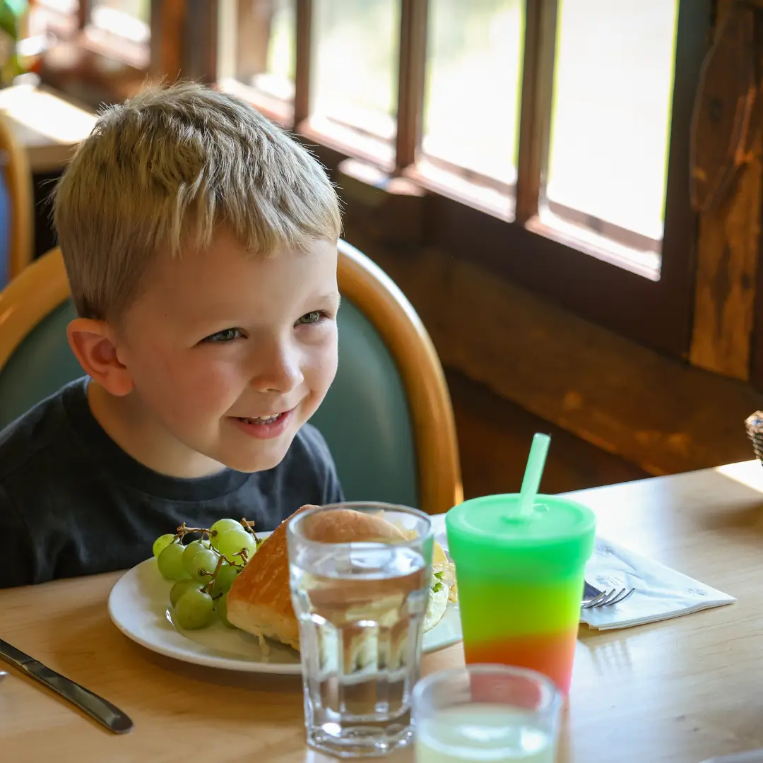 Dinner is a full-service three course meal. Soup & salad for the appetizer. Entrees offer guests delicious plates like Minnesota walleye, steak, ranch chicken, turkey dinner or prime rib (the choices change daily). We also serve a kids bar at the dinner meal, so kids can start eating right away. The kid-friendly menu changes at each meal. Delicious homemade desserts, warm bread and a variety of beverages accompany the meal.