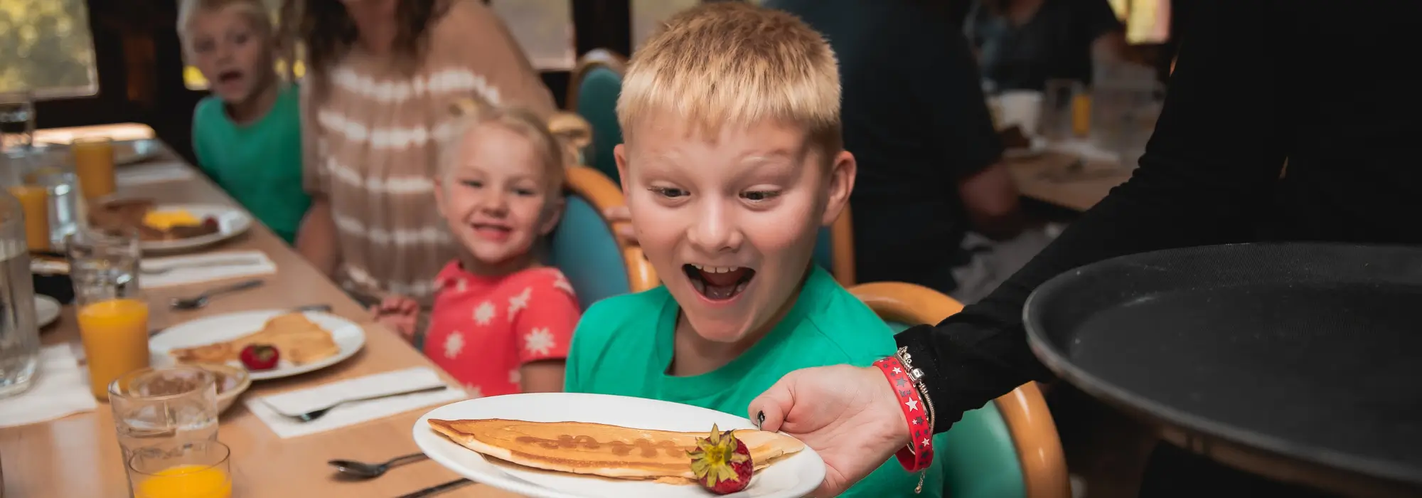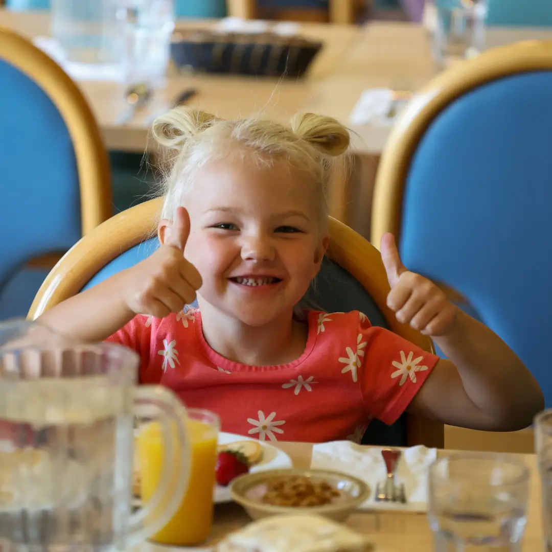 You and your family will have an assigned table that will be your seating for the duration of your stay. If you are coming with a large party, we will give your group multiple tables to use. We typically seat tables of 10 or less. You and your family will have an assigned Waitron (our fun word for server) for the duration of your stay. Your Waitron will assist you in all things dining and we hope you get to know your Waitron well! Typically our staff comes from around the world!